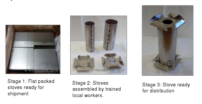 It also helps us keep unit costs down by shipping the stove flat packed. Think about it. If a stove costs $8 each but it costs $60 to ship, you effectively are trying to sell poor people a $68 stove.