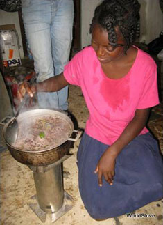 We had to do the same thing in Haiti recently. There, because many people are living in refugee camps, with many children doing the cooking, and in very close proximity to each other, we had to devise a protective heat shield. Haiti is very windy, too, so the shield actually served two functions. We also paid close attention to the local cooking habits and we noticed they use up to seven or eight pots and pans to cook a meal. This makes it a challenge but we came up with a solution that accommodates this need. Smoke is also a problem when you live in close quarters but as a negative pressure pyrolytic gasifier, the stove produces very little smoke.